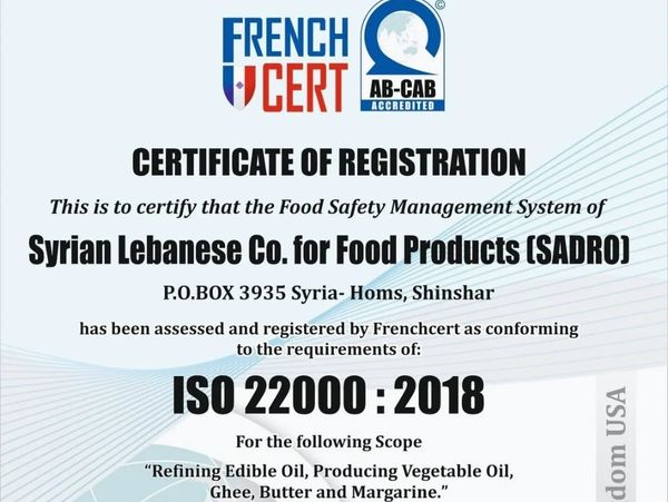 Sadro carries out its oil production at the fully integrated edible oil factory with the largest Refinery capacity in Syria , located in Homs , sunflower oil and palm oil produced by a fully automated system untouched by human hands throughout the entire production and offered from the field to the table, reflects the principle of “Same quality in the first and the one millionth bottle” with its quality and bottle design. Sadro is produced in a fully integrated structure with the latest technology .